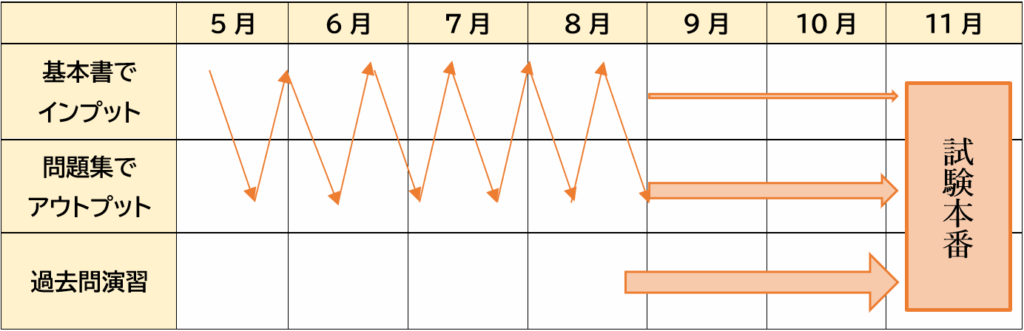 ・8月の終わりまでは、基本書と問題集を繰り返し用いて基礎を固める