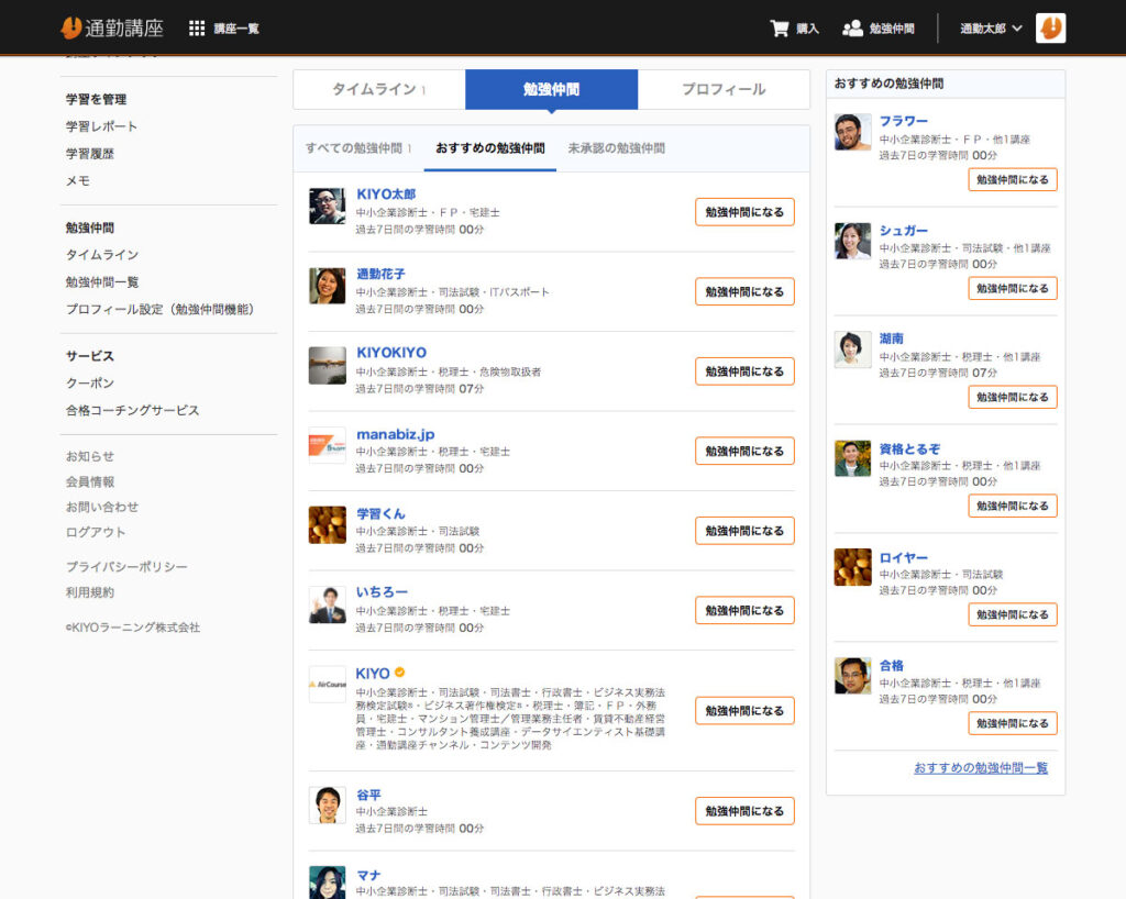 勉強仲間機能(SNSサービス)