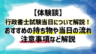 行政書士 行政書士試験の持ち物、当日の注意事項 こんにちは。ひのです。行政書士試験が間近に迫ってきて、ラストスパートをされている行政書士受験生のみなさん、こんにちは!この記事をみなさんが読んでいただいているということは、だいたい行政書士試験の勉強を終えて、対策はバッチリということでしょう... 2026.04.16 行政書士